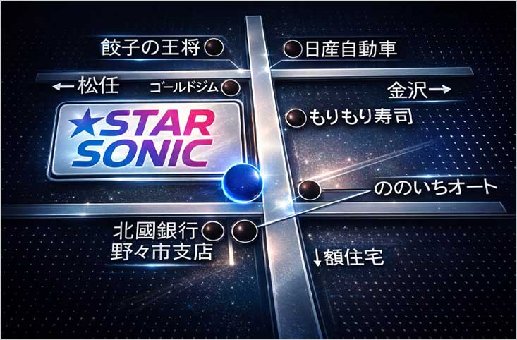 STAR SONICは石川県野々市市にある、ライブ・リハーサル・イベント利用に対応したスタジオです。
